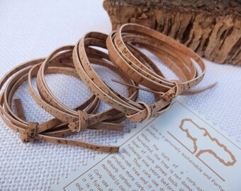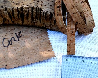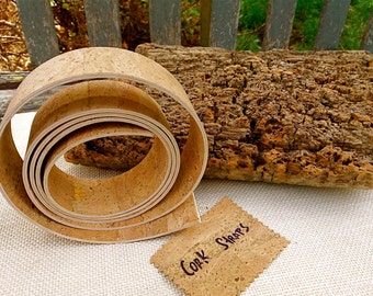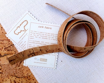 Natural cork strip 2x1meter (39 3/8"), 1cm wide (3/8"), made of Eco friendly Portuguese double side cork fabric, for bracelets, cork cord