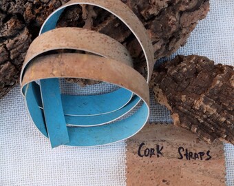 Genuine cork leather lace, blue and natural, 2 x 1meter (39 3/8"), 1cm wide (3/8"), Portuguese cork fabric for bracelets, necklace, Jewelry