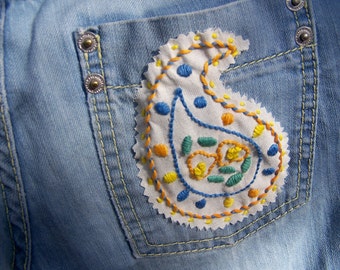 Embroidery pack with Paisley design on plain white fabric for DIY needlework project, Pre stamped Pattern with needle and embroidery thread
