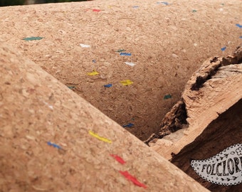 Cork fabric with colorful carnival pattern, cork board, rainbow confetti eco leather for cork projects, multicolor spots vegetable leather
