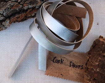 Silver and natural Cork Strap, 1 meter (39 3/8") x 2cm wide (3/4"), cork leather handles for handbags, lace for keychaine and lanyards, gray