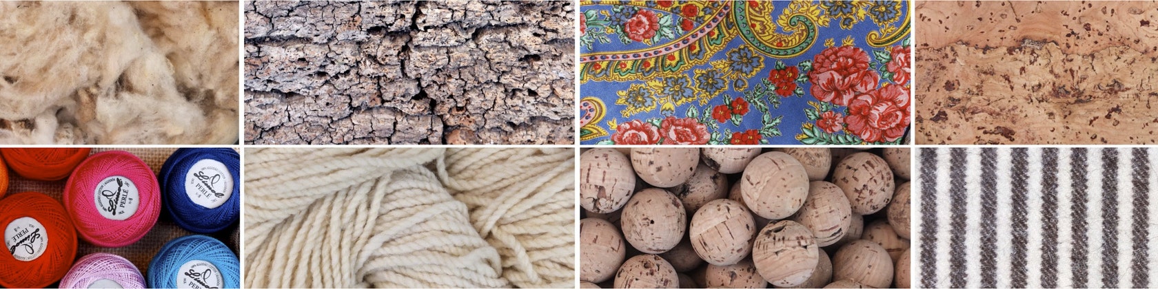 Our range of craft supplies includes cork materials, wool fabrics and yarns, embroidery supplies, vintage ribbons, national fabrics, cotton and linen yarns, craft twines, and eco-friendly papers.