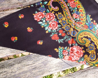 Portugal folklore traditional shawls, unfinished scarf, colorful floral paisley motif, regional fabric for sewing projects, made of rayon