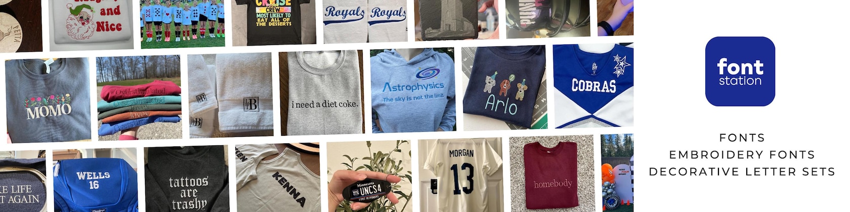 Thinking about a custom font or decorative set? Have an idea for an embroidery font? We'd love to hear about it. Drop us a message on Etsy or email us at contact[at]font-station.com — let’s chat and figure out what works best for your project.