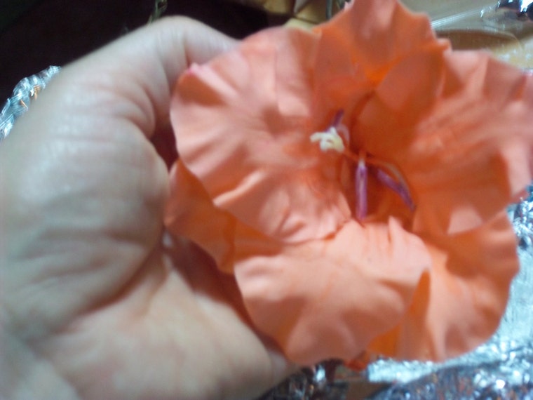 To add realism, pistil and stamens are recreated also. Gladiolus pistils and stamens in progress here. -