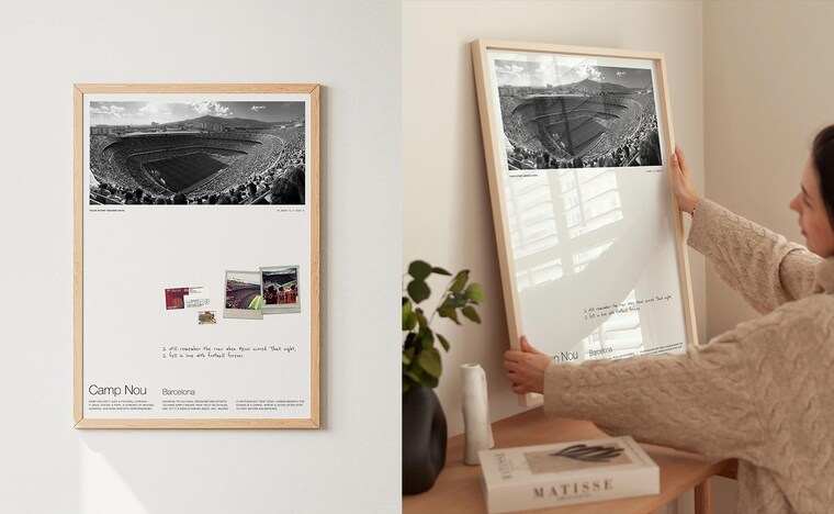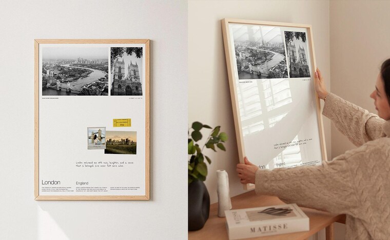 Zur sicheren Befestigung Ihrer persönlichen Gegenstände – wie Fotos, Tickets, Briefmarken oder Postkarten – empfehlen wir Ihnen die Verwendung von „Fotoklebepunkten“ oder „Fotoecken“. So können Sie Ihre Gegenstände sicher platzieren, ohne sie zu beschädigen. Nach dem Anbringen am Poster können Sie es einrahmen.Bitte beachten Sie: Wenn Sie die Gegenstände nicht sichern, können sie im Rahmen allmählich nach unten rutschen.