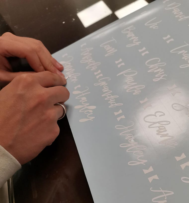 We create personalized pieces for weddings, homes, milestone moments, and meaningful gifts. Our work includes wedding place cards, drink stirrers, cake toppers, table numbers, custom signs, medal holders, nursery pieces, and other made-to-order keepsakes.