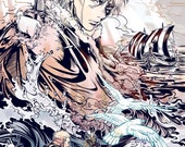 5 out of 5 starsI missed out on this piece at Anime Boston but thankfully the artist had it here on Etsy! It's even more stunning in person! I love how this piece incorporates so many of the details and storylines - you find something new every time you look! The seller definitely took a lot of care to deliver this piece in a safe and protected manner! it arrived quickly and flawlessly. I'm definitely keeping an eye out for new stuff from this shop in the future! I got the larger version with a white border. I purchased a sleeve protector from Amazon (which you can see in my picture). will frame it once I find a frame that deserves this masterpiece!