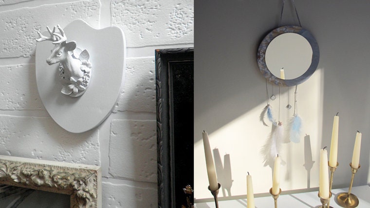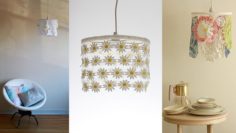 Nice began with vintage home decor, wood burned and acrylic paintings, and of course my Mini Deer Plaques and signature party banners that have helped me stand out and make a name for myself. Since then I have added jewelry, prints of my original artwork, Mod Cabin Clocks and chalkboards, Illuminated Memo Boards, my widely blogged light shades made with vintage textiles such as doilies, and most recently in early 2011 my very special Fringe Banners / Glittering Fringe Banners made their Etsy debut.