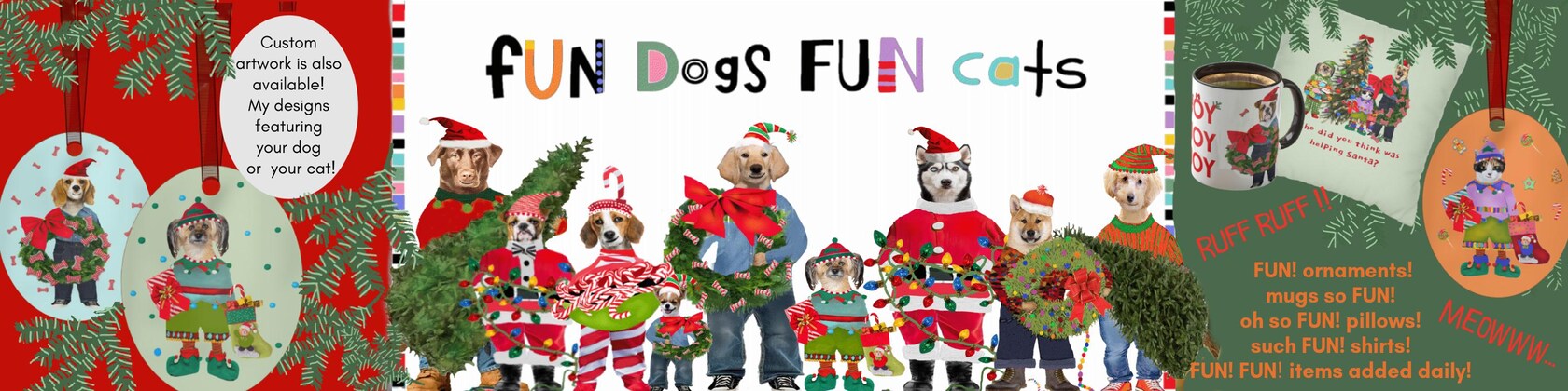 The cat and dog illustrations are my original concepts and illustrations transferred to products I hope you will enjoy.