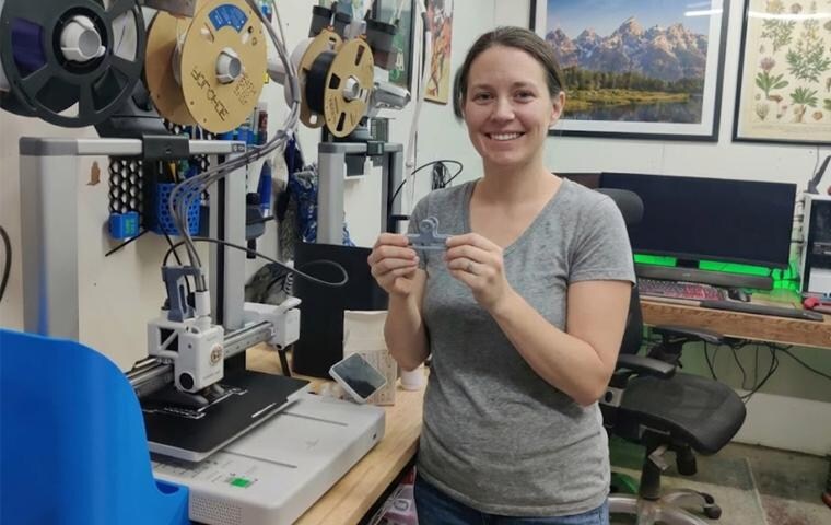 My loving wife of 10 years helps with the daily processing of prints from our 3D printers. -