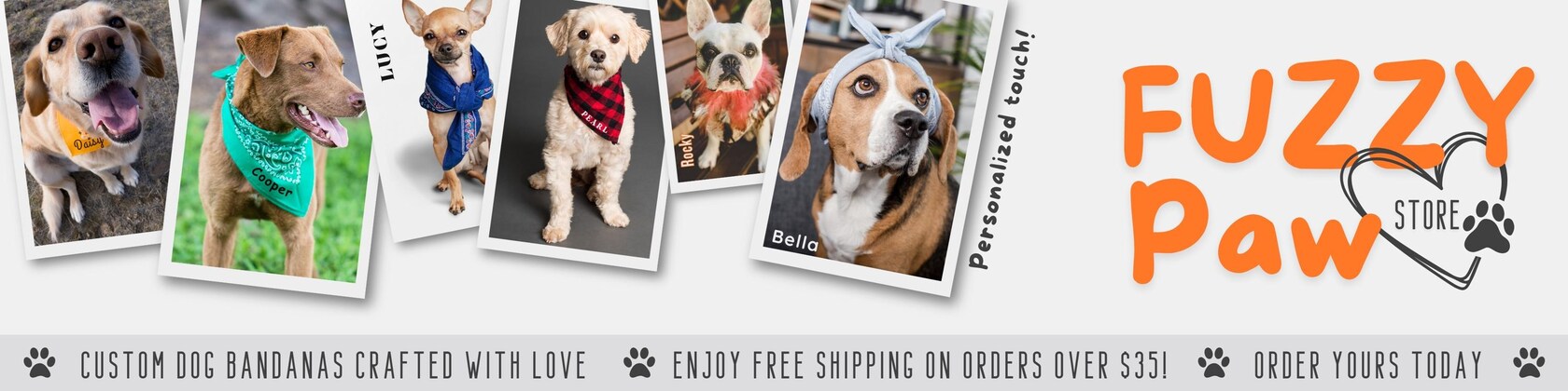 5 out of 5 starsMy first purchase from FuzzyPawStore, and I’m truly impressed with the quality and personalization of my dog’s name on the bandana. We've received so many compliments—absolutely love it!