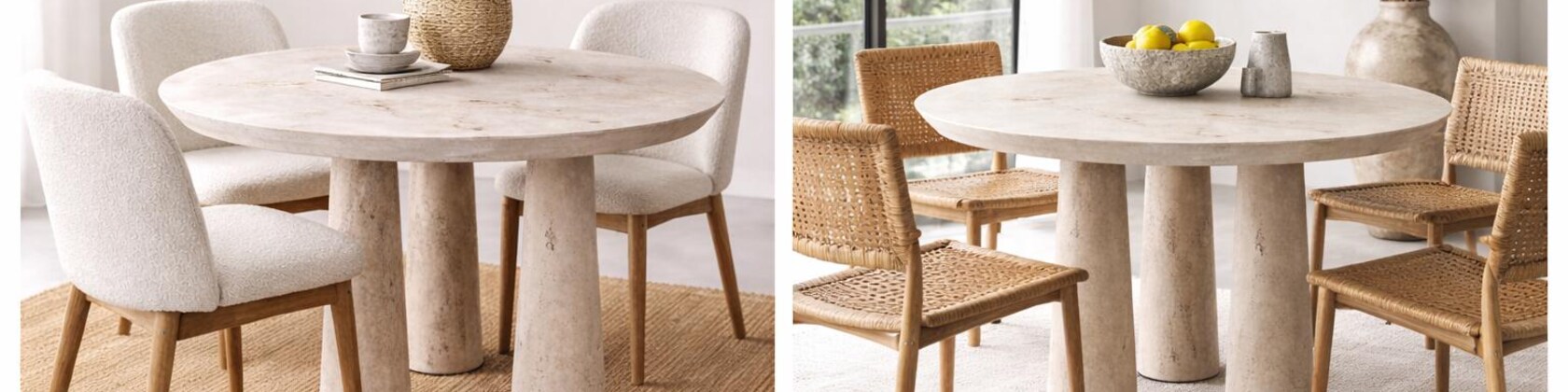Our tables are designed to be both functional and sculptural, combining timeless materials with modern forms. From the solid stone tops to the architectural conic legs, every detail is carefully finished for durability, stability, and long-term use.