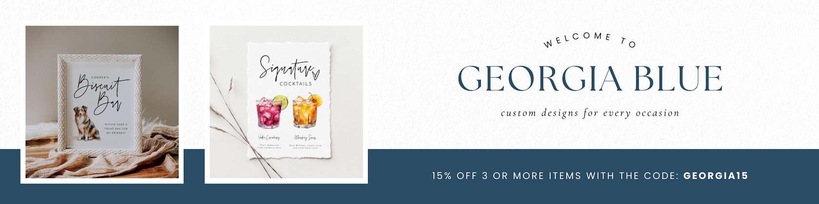 Hello, and welcome to Georgia Blue Design Co.! I'm Amber, the owner and designer behind the brand. Born, raised and still residing in a charming small town in South Georgia, I started Georgia Blue after planning my own wedding in 2014.