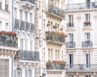Paris Architecture Photograph - Window Boxes and Lamp Posts, Travel Photography, Large Wall Art, Neutral French Home Decor, Fine Art Photo