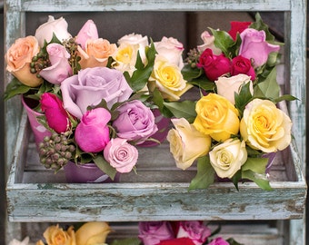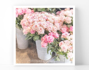 Paris Photography - Roses in Zinc Buckets, 5x5 Paris Fine Art Photograph, French Home Decor, Wall Art, Paris Gallery Wall