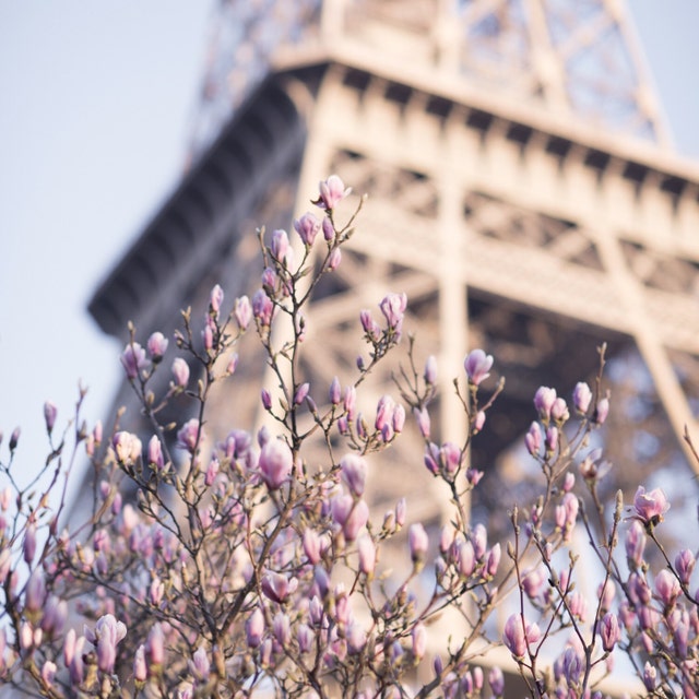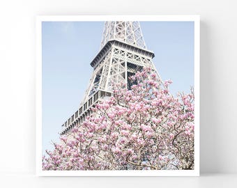 Paris Photography - Magnolias at the Eiffel Tower, 5x5 Paris Fine Art Photograph, French Home Decor, Wall Art, Paris Gallery Wall