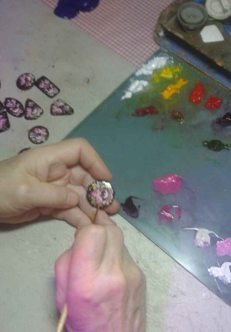 Our Artist who paints flower pendants