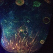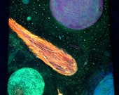 5 de 5 estrellas¡La calidad de esta obra de arte es estelar! Esta es una interpretación única en su tipo y no se puede comparar con ninguna otra pieza de mi colección. Una luz negra realmente muestra la imagen con una especie de cualidad mágica. Compraré más de este artista.