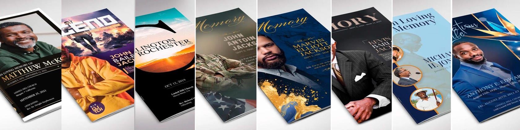 Godserv Designs ofrece plantillas de impresión que dan dignidad, elegancia y significado a los momentos más importantes de la vida. Explore nuestro portafolio para encontrar programas funerarios premium, folletos conmemorativos, diseños para aniversarios de iglesias, plantillas para celebrar la vida y otros recursos de diseño de alta calidad que le ayudarán a honrar, conmemorar y celebrar.