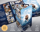 Elegantes plantillas Canva e imprimibles para funerales, aniversarios de iglesias y eventos, creadas con dignidad, fe y un diseño atemporal por Godserv Designs.