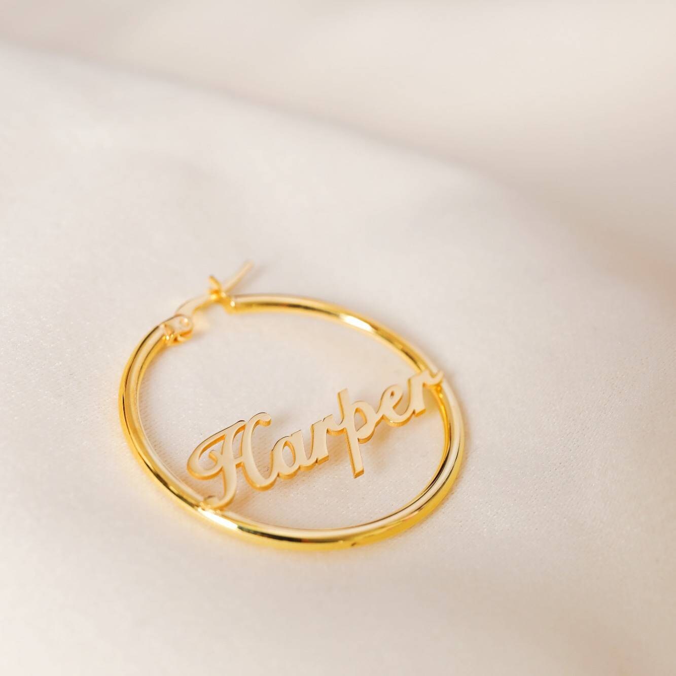 "Sterling Silver Handmade Circle Name Earrings unique piece of dainty design."