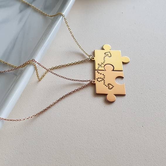"2 pieces couple puzzle necklace here for soul mate couple to complete in style"