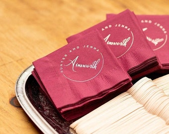 A basic rule-of-thumb is 4 napkins per guest. This will vary depending upon the length and type of reception. Be mindful that you will want to order more than needed, especially if they will be used for multiple locations throughout the evening. We recommend, if ordering a larger quantity, not putting the date on all the napkins so the remaining napkins may be used at your new home.