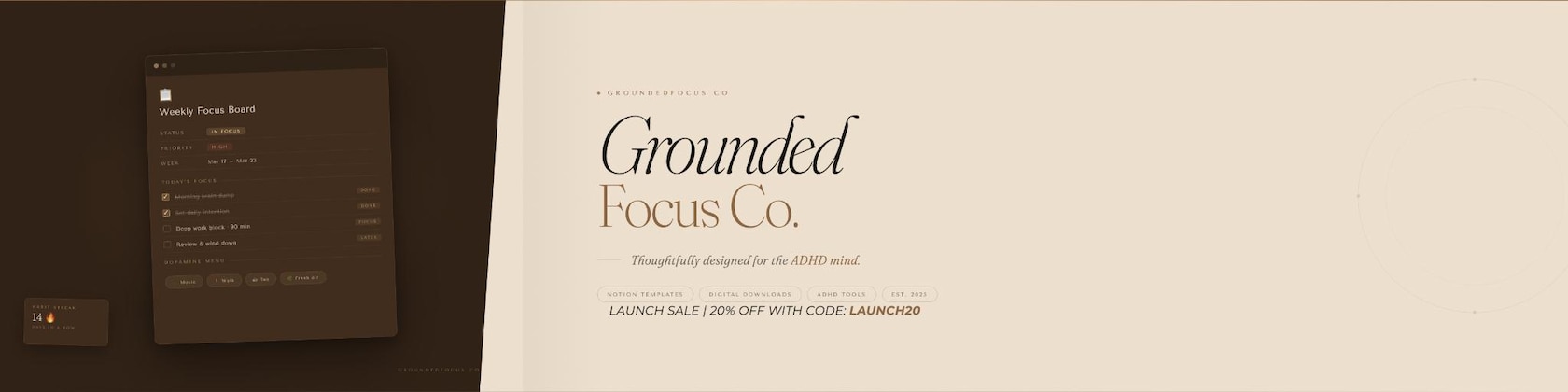 🎉 LAUNCH SALE: Use code LAUNCH20 for 20% off our new ADHD Notion Template!