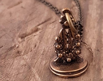 Crown Wax Seal Necklace, Necklace with a Meaning, Vintage Wax Seal, Gold Crown Jewelry, Wax Seal Jewelry, Crown Pendant,