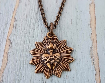 Sacred Heart Necklace, Catholic Jewelry, Sacred Heart, Necklace, Heart Jewelry, Heart and Thorns, Tattoo Pendant