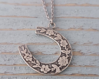 Horse Shoe Necklace Equestrian Jewlery Horse Pendant Gift for Horse Lovers Silver Lucky Horseshoe