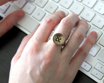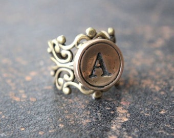 Solid Bronze Wax Seal Ring - Adjustable Antique Brass Band - Cast From Real Typewriter Keys - All Letters Available - A to &