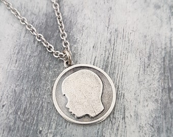 Boy Silhouette Necklace - Customized Son Necklace - Personalized Mother's Necklace - New Mom Gift - Mother's Gift - Silver 392