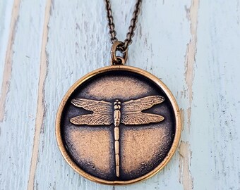 Silver Dragonfly Necklace, Custom Insect Jewelry, Personalized Gift For Mom, Engraved Disc Necklace, Round Dragonfly Statement Pendant
