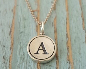 Personalized Letter Jewelry, Sterling Silver Initial Necklace, Typewriter Key Charm, Typewriter Necklace, All Letters Available