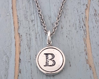 Letter Initial Necklace - Personalized Silver White Bronze Typewriter Key Charm Pendant - Solid Handcrafted - All Letters Available