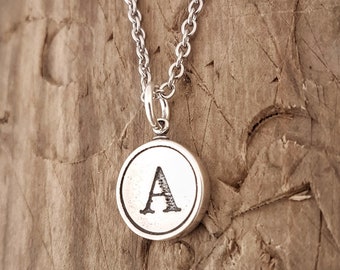Silver White Bronze LETTER Seal Stamper Necklace by Gwen Delicious Jewelry - Usable Seal Stamp