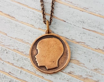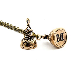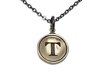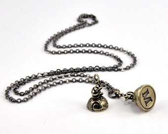 Personalised Initial Custom Wax Seal Typewriter Key Pendant Necklace - Solid Bronze - Custom Chain Lengths - Baby/Wedding/Birthday Gift