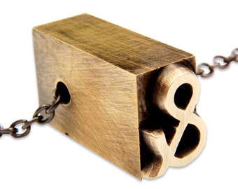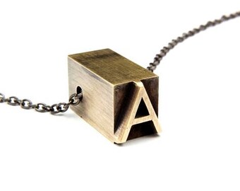 Custom Engraved Brass Letterpress Initial Necklace - Solid Brass Letterpress Pendant Necklace - Personalized - All Letters Available