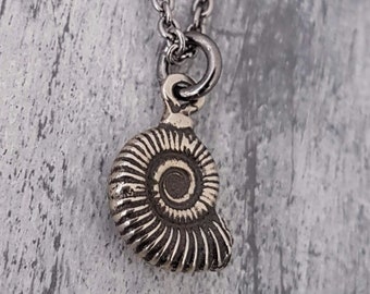 Silver Ammonite Fossil Necklace Tiny Fossil Necklace, Fossil Necklace, Ammonites Charm, Dinosaur Fossil Jewelry, Nautilus Necklace