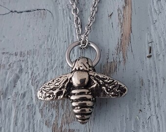Bee Necklace, Honey Bee Charm, Bee Jewelry, Silver Bee Charm, Bee Pendant, Bumble Bee Jewelry, Insect Necklace, Silver Insect Necklace,