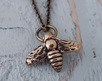 Bee Necklace, Honey Bee Jewelry, Bronze Insect, Gold Bee Necklace, Insect Jewelry, Bug Necklace, Bug Jewelry, Bee Pendant, Gold Bug Necklace