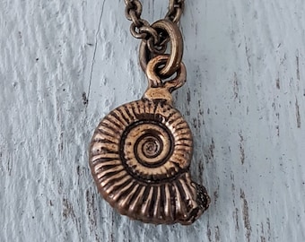 Tiny Fossil Necklace, Gold Ammonite Fossil Necklace, Ammonites Charm, Dinosaur Fossil Jewelry, jewelry made from fossils, Nautilus Necklace