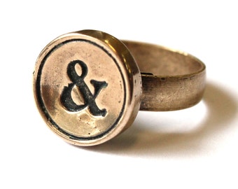 Solid Bronze Wax Seal Ring - Adjustable Antique Brass Band - Cast From Real Typewriter Keys - All Letters Available - A to &