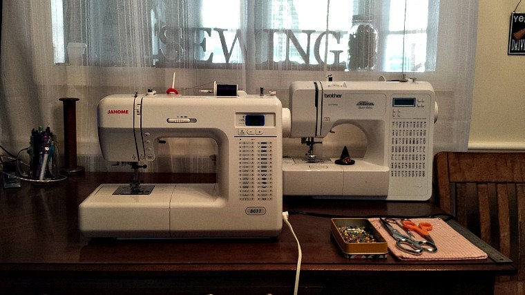 Meet my beloved Janome and her backup, a Brother. Nearly every sewn item in my shop was created on the trusty Janome. -
