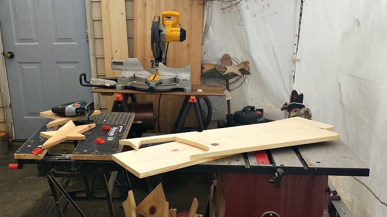 Just part of my workshop - the worktable, jig saw and compound miter saw. I really love making sawdust...and noise! -