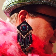 My first creations included a collection of vintage earrings ,necklaces and bracelets. Thereafter, I incorporated into my collection themed handbags, such as the New York skyline, Las Vegas, Elvis, Harley Davidson, South Beach etc. The designs utilize Swarovski crystals, semiprecious stones, Japanese seed beads, and other unusual materials handcrafted on either leather or brass evening or daytime bags. Each piece in the collection is named and signed by myself.