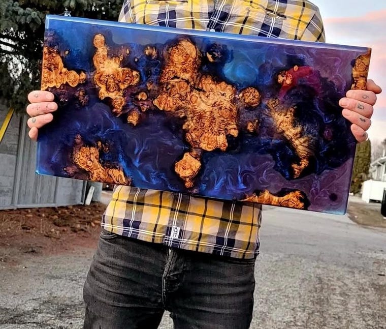 Art has always been my language—whether drumming on stage or now working with my hands to shape wood and epoxy into something extraordinary. What began as a creative outlet quickly grew into a passion: merging live edge wood with resin to create one-of-a-kind pieces that feel alive with texture, colour, and movement.