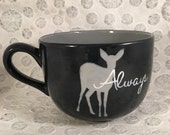 All my mugs are hand painted and kiln fired. I do not recommend putting them in the dishwasher because it may chip your item or wear away the sheen of the glaze.